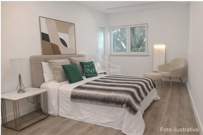 AVENIDA DA REPUBLICA EDIFICIO REPUBLICA 2 ESCRITORIO 2 , 2645-143, LisboaApartamento T3 – 97 m², em renovação total com Varanda. Benfica. Apartamento T3, com 97 m², no 2º andar, totalmente remodelado. Inserido num prédio com dois elevadores, o imóvel combina conforto, modernidade, ideal para habitação própria ou investimento seguro. Distribuição: •Cozinha + Sala em Open Space com 35 m²: Espaço funcional e luminoso, com acesso direto à varanda e vista desafogada sobre o rio. Cozinha equipada com: ▸ Móveis brancos modernos ▸ Ladrilho decorativo em toda a parede posterior ▸ Eletrodomésticos encastrados: forno, placa, exaustor, micro-ondas, máquina de lavar loiça e máquina de lavar roupa encastradas, termoacumulador e combinado encastrados •Hall de Entrada com 5 m² •Casa de Banho Completa com 3 m²: Loiças suspensas •Três Quartos: o primeiro com 12 m², o segundo em suite com 28 m² e o terceiro com 15 m² Cada quarto conta com roupeiro e boa luminosidade natural. Acabamentos: •Caixilharia lacada a branco com vidros duplos e sistema Oscilo-batente em todas as assoalhadas •Teto falso com iluminação LED embutida em todas as divisões principais •Pré-instalação de Ar Condicionado •Duas frentes •Porta Blindada. •Janelas em PVC. •Estores Elétricos. O Prédio •Dois Elevadores. Valor do Condomínio = 55.48 € Envolvente e Localização O apartamento está inserido num bairro familiar, residencial e com novos pontos de comércio e serviços, sem perder o charme do comércio tradicional. Com excelente acesso a transportes públicos, zonas comerciais, escolas e todo o tipo de equipamentos sociais. Centro Comercial Colombo, Hospital da Luz, Estádio da Luz, Metropolitano do Colégio Militar, Centro Comercial Fonte Nova.